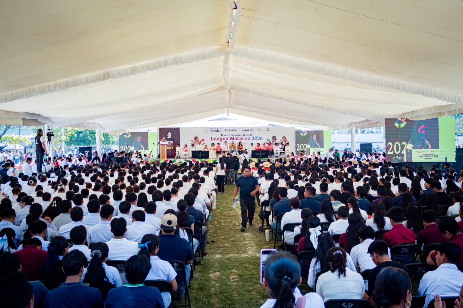 El evento reunió a alrededor de dos mil asistentes, entre autoridades federales, estatales, docentes y estudiantes de Educación Indígena, quienes reafirmaron su compromiso con el desarrollo de las lenguas originarias de México.